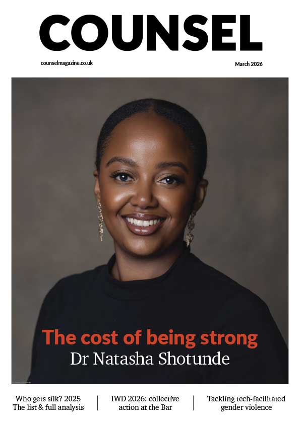 Natasha Shotunde of Garden Court Chambers is featured on the March 2026 cover of Counsel Magazine.