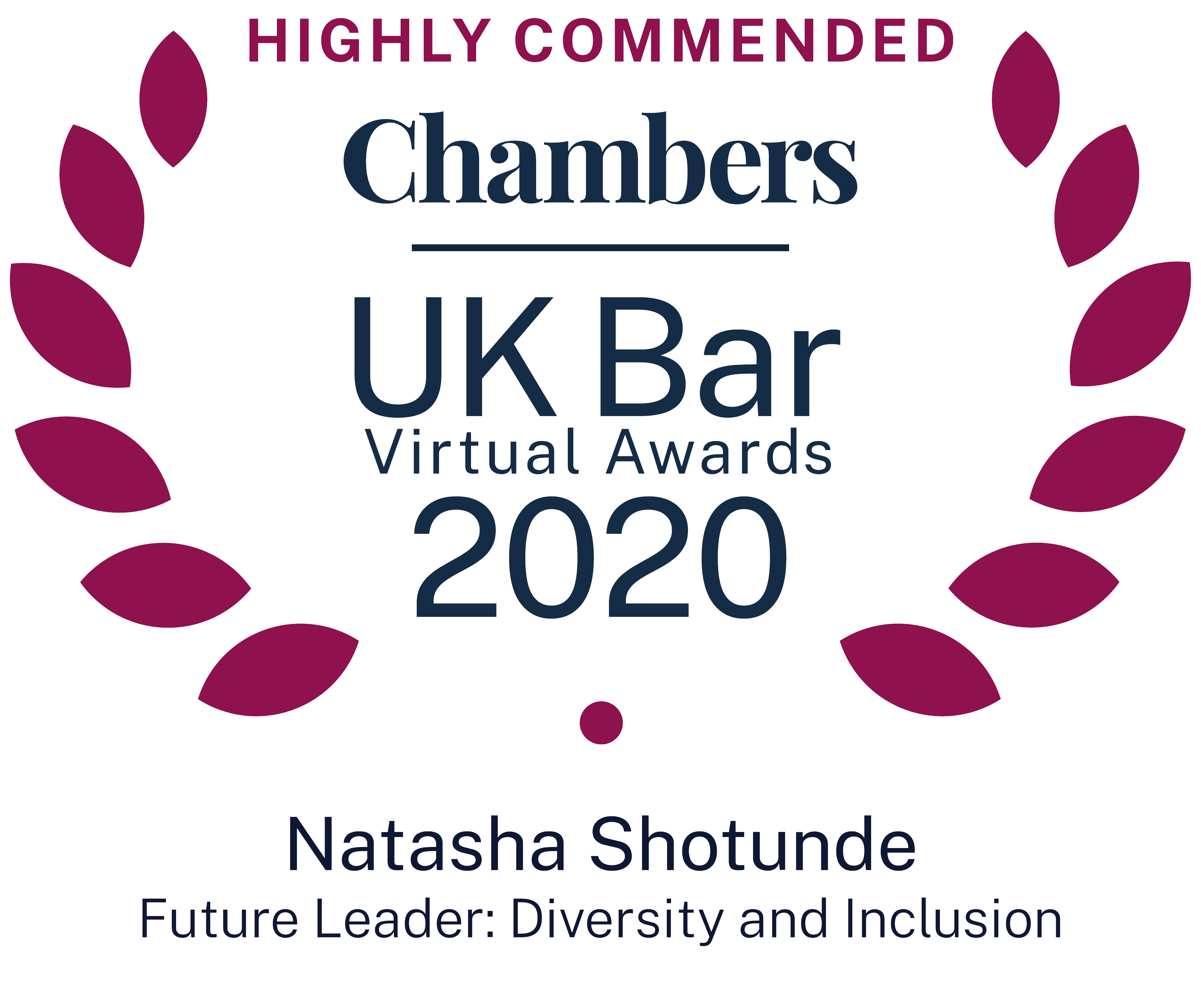 We are delighted to announce that Natasha Shotunde was Highly Commended in the 'Future Leader: Diversity and Inclusion' category at Chambers UK Bar Awards 2020.
