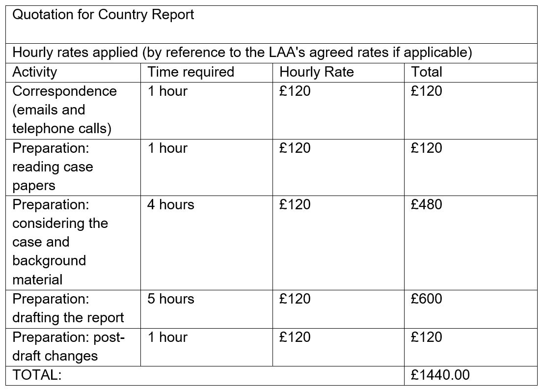 Practitioners should be preparing the initial funding applications in a detailed and thorough way. We know that the LAA want to see 3 alternative quotes for each expert and a complete breakdown of all work required so lawyers should ensure their request to each expert asks for this as well as a full copy of the CV. Just a simple “my report will be £1000” will not pass with the LAA – they want to know the hourly rate and as precisely as possible, how many hours will be spent on each activity. For example:
